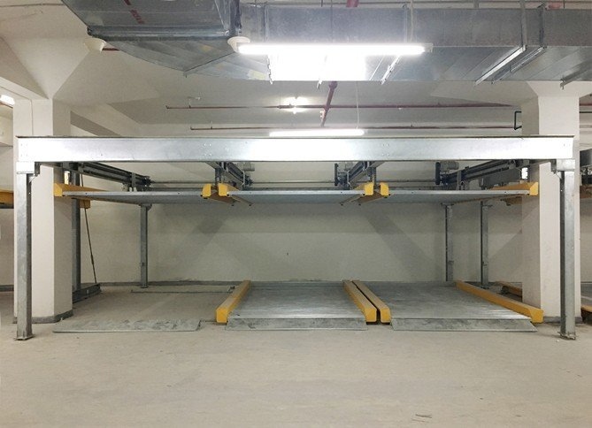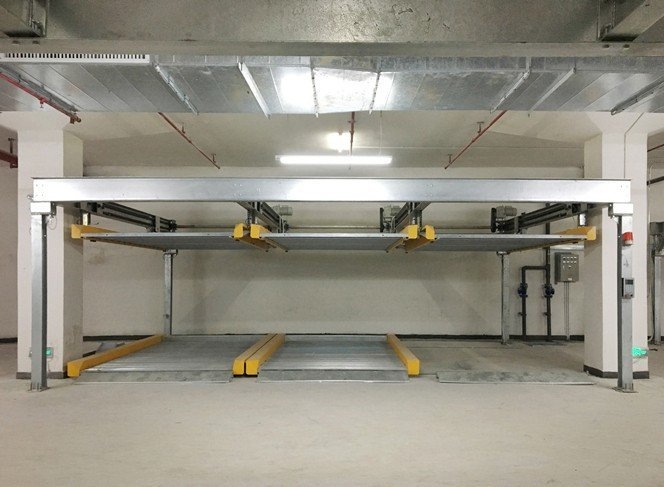 工作原理:兩層升降橫移機(jī)械式車位,通常也叫復(fù)式車位,是以四柱框架結(jié)構(gòu)結(jié)構(gòu),電機(jī)驅(qū)動(dòng),鏈條提升,電氣自動(dòng)化控制程序,上層車位只能垂直升降,下層車位只能水平橫移,實(shí)現(xiàn)整個(gè)機(jī)械式車位存取車過程。